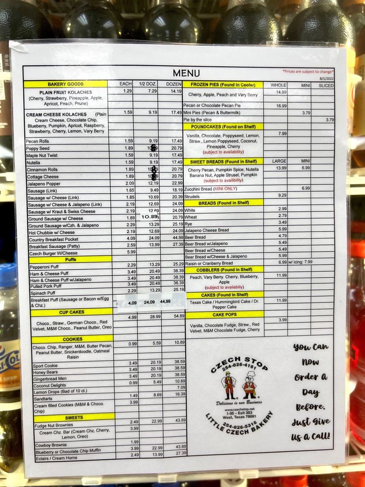 At Czech Stop, located on I-35 Exit 353 West, TX 76691, you can indulge in a variety of delicious baked goods. Customers rave about their eclairs and kolaches, with unique flavors like savory sausage and fruit-filled options. The fluffy dough and perfect sweetness of their kolaches are a definite highlight. The value for money is excellent, making it a solid stop for a quick and tasty bite while on the road. The convenience store setup may lack ambiance, but the friendly staff and quick service more than make up for it. Don't miss out on trying their iconic bakery items, whether it's for breakfast, brunch, lunch, or dessert. Czech Stop offers a great selection, including beef jerky and drinks, making it a must-visit destination for both locals and travelers passing through.